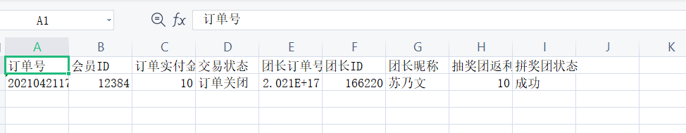 2)導出拼團活動訂單可以導出“抽獎團返利”“抽獎團狀態”