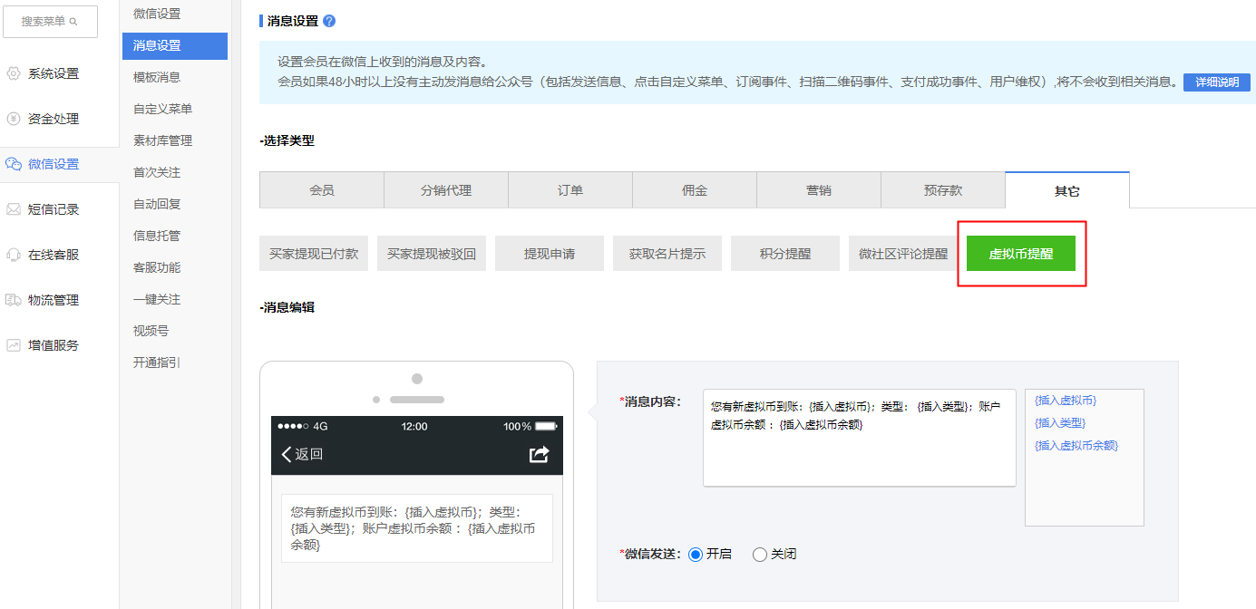 現邏輯:微信設置-消息設置-其它,增加虛擬幣提醒