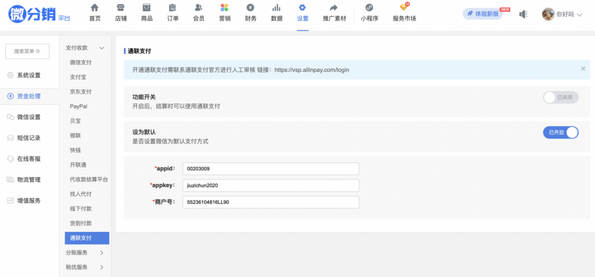 用戶場景:小程序端開通通聯支付,方便客戶使用