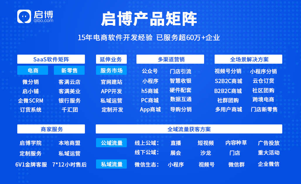 啟博作為新經(jīng)濟(jì)形態(tài)下的電商數(shù)字化解決方案公司,在賦能各類(lèi)B端商戶(hù)的同時(shí),對(duì)外宣布將啟動(dòng)“共創(chuàng)共贏 讓創(chuàng)業(yè)更簡(jiǎn)單計(jì)劃”,并有“優(yōu)厚政策”對(duì)代理商進(jìn)行重點(diǎn)扶持,共同掘金社交電商新賽道。啟博電商SaaS渠道招商產(chǎn)品有微分銷(xiāo)商城代理、小程序代理、客滿(mǎn)云店代理、客滿(mǎn)美業(yè)代理、千匯團(tuán)代理、官網(wǎng)建站、官網(wǎng)優(yōu)化業(yè)務(wù)代理等,涵蓋公私域主流解決方案和經(jīng)營(yíng)場(chǎng)景。