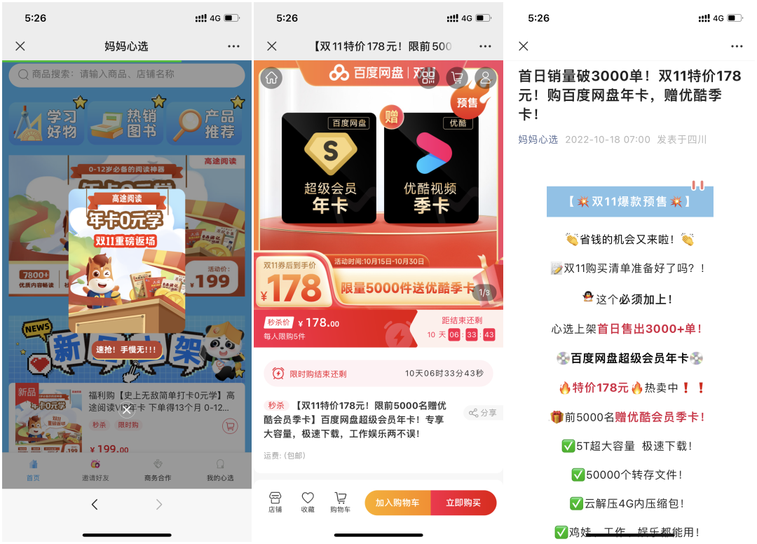 活動時間:10月15日 -10月30日,上線預售商品買百度網盤贈送優酷視頻季卡活動,限量前5000名下單的消費者。