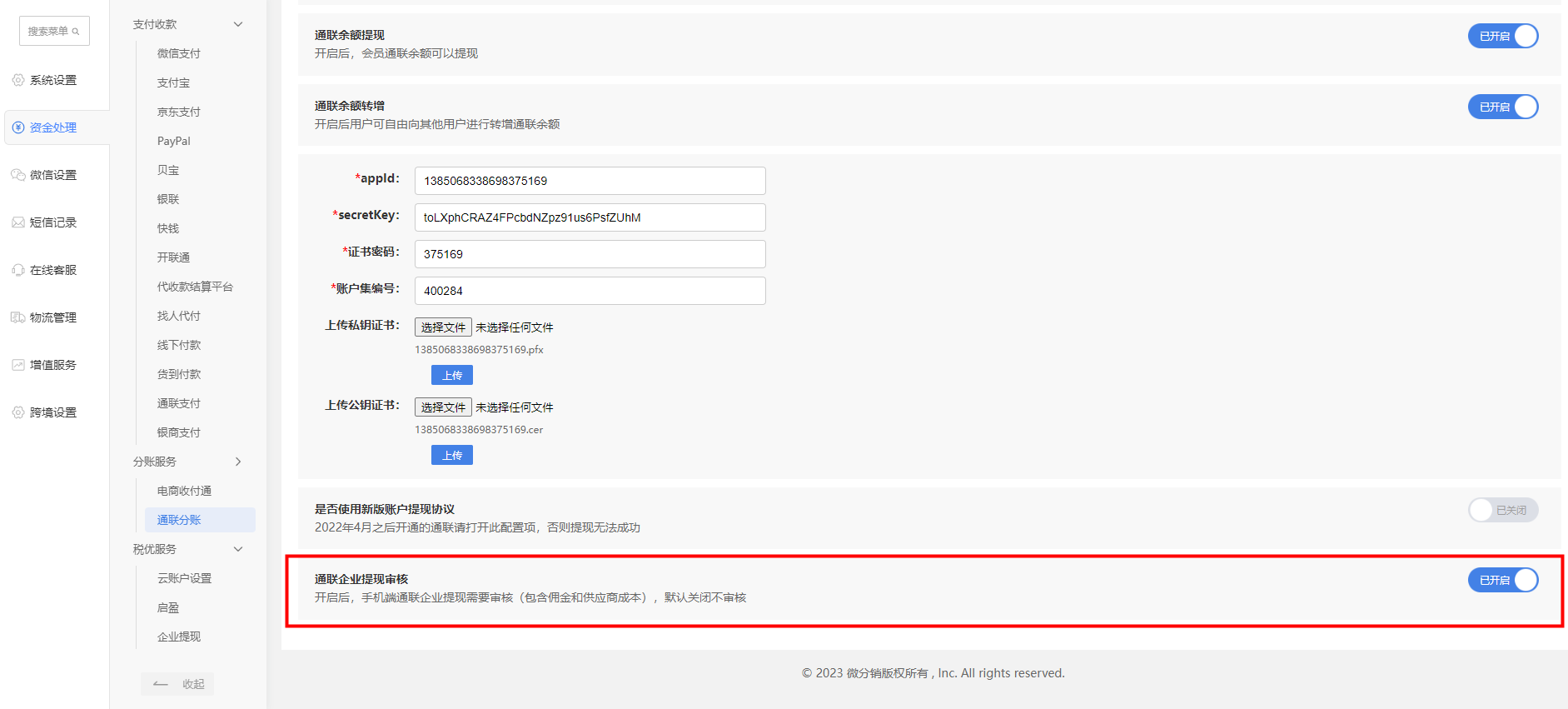 02 、通聯【供應商成本和傭金】企業提現需要審核