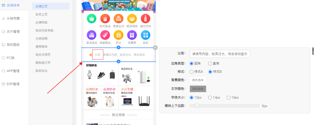 4.裝修:公告組件【優(yōu)化】;