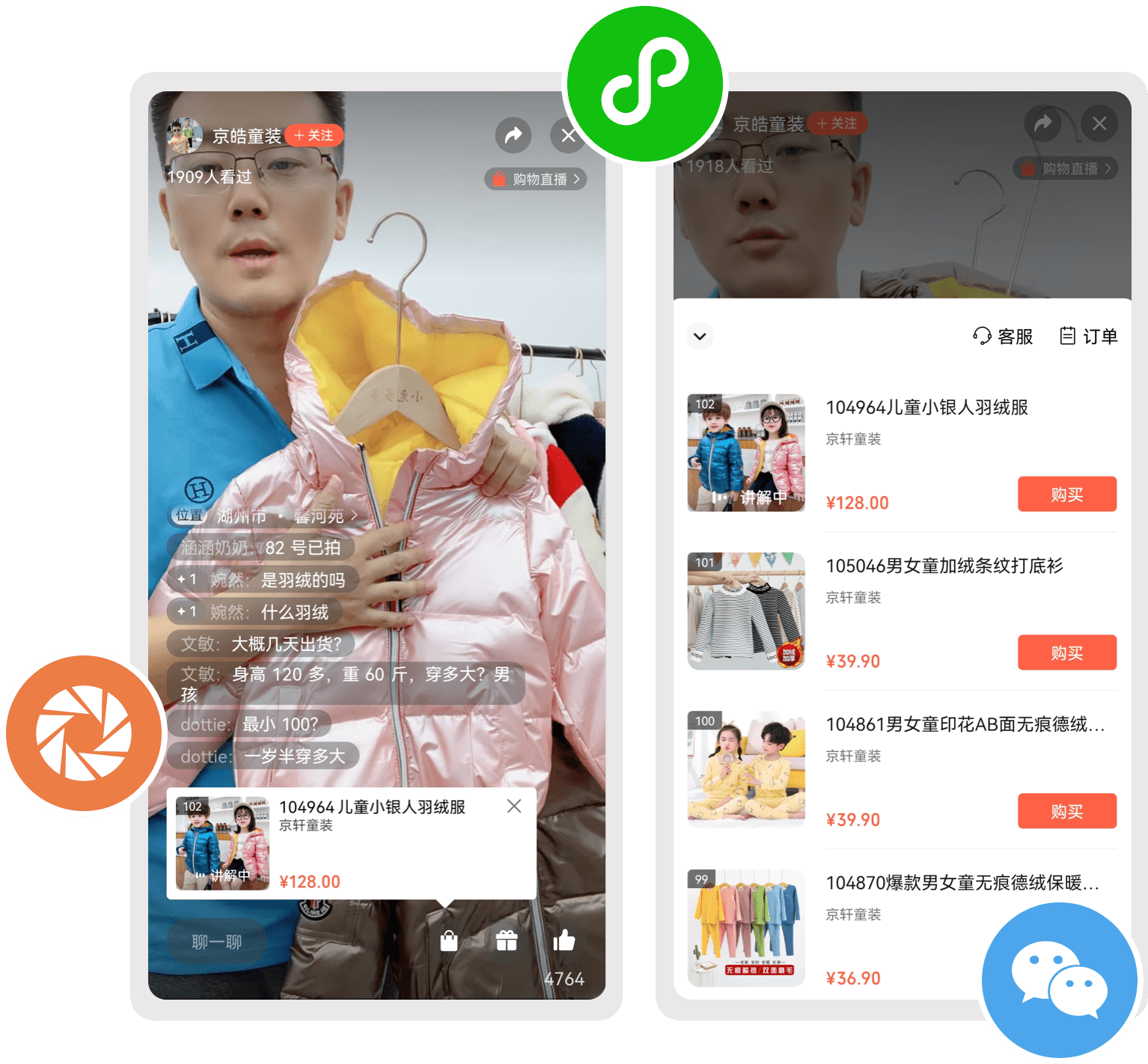 快速直播,全網(wǎng)賣貨公眾號(hào)、小程序、微信群、朋友圈等多個(gè)渠道預(yù)熱,即看即買 -