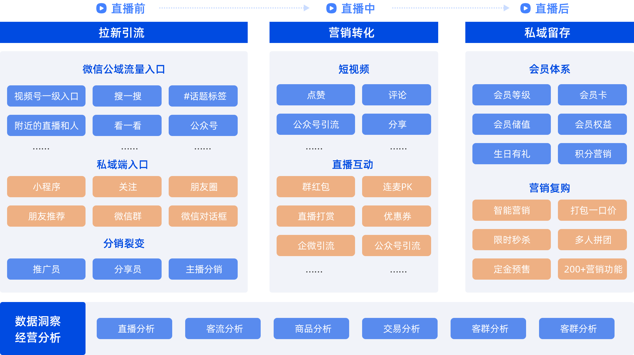 通過視頻號(hào)內(nèi)容運(yùn)營,聚焦流量到企業(yè)公眾號(hào)及公眾號(hào)搭載的微商城小程序,定向引流客戶到微商城實(shí)現(xiàn)消費(fèi),完成轉(zhuǎn)化。