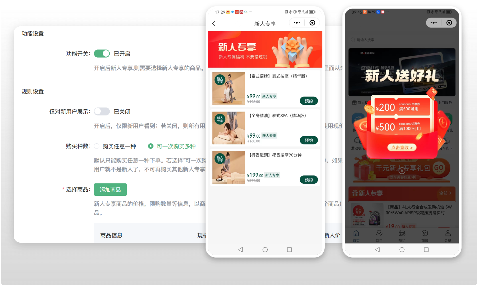利用進(jìn)店有禮活動,新用戶進(jìn)入小程序彈出優(yōu)惠內(nèi)容,讓用戶注冊會員并完成首單,沉淀自有會員數(shù)字資產(chǎn)。同時裝修精美的小程序也可以讓用戶停留時間變長,用戶可在線查看各內(nèi)容,以及預(yù)約、留言、評價、聯(lián)系在線客服等。